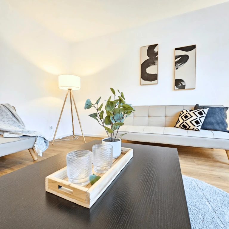 Um die Mietersuche schnell und unkompliziert zu gestalten, wurde ein Home Staging durchgeführt. Die Bilder können auch bei zukünftigem Mieterwechsel verwendet werden.